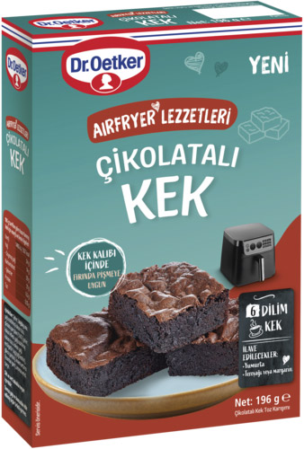 Dr. Oetker Airfryer Serisi ürünlerinden Çikolatalı Kek, sadece 2 yumurta ve tereyağı veya margarin eklenerek hazırlanıyor. Ürüne dahil kek kalıbıyla kolayca pişirilebiliyor.
