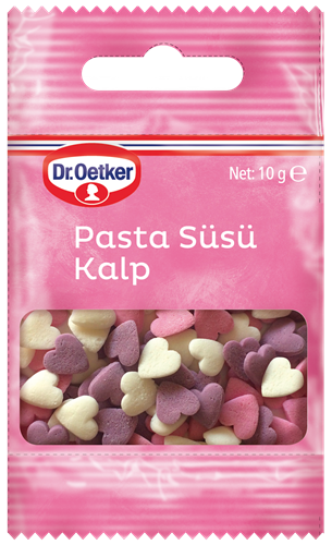 Kullanıma hazır olan ve üç farklı renklte kalpler içeren bu ürün ile tariflere sevgi dolu görünümler vermek mümkün.