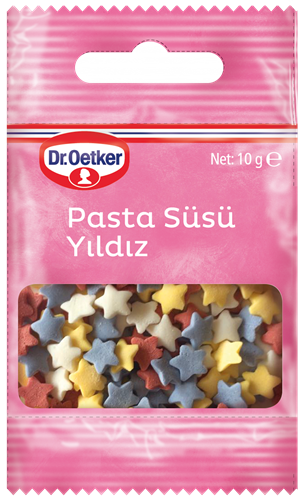 Kullanıma hazır olan ve farklı renklerde yıldızlar içeren bu ürün ile tariflere neşeli görünümler vermek mümkün.